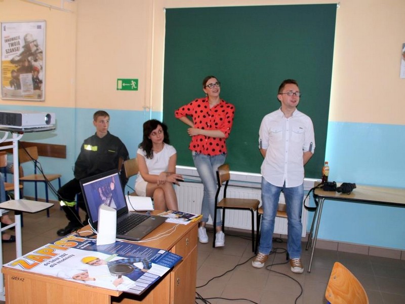 Uczniowie i nauczyciele Technikum ZDZ w Kazimierzy Wielkiej z pełnym zaangażowaniem wzięli udział w prezentacji szkoły , służyli pomocą i odpowiadali na każde zadane pytanie .