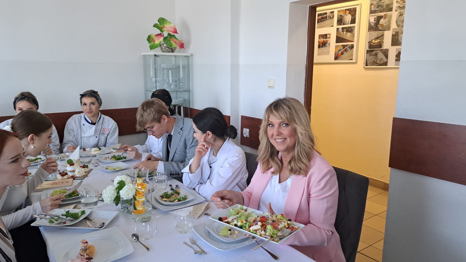 Spotkanie miało również wymiar motywacyjny – Pani Ewa podzieliła się z młodzieżą swoją drogą zawodową, opowiedziała o kulisach pracy w mediach, o pasji, która stała się jej sposobem na życie, oraz o wartościach, które przyświecają jej w codziennej pracy. Podkreślała wagę ciężkiej pracy, konsekwencji i szacunku do tradycji kulinarnej.