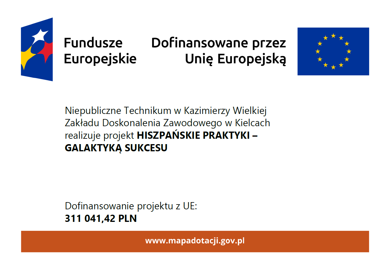 Nasza szkoła rozpoczęła realizację przedsięwzięcia nr 2024-1-PL01-KA122-VET-000227619 pn. „Hiszpańskie praktyki – galaktyką sukcesu” realizowanego w ramach programu Fundusze Europejskie dla Rozwoju Społecznego 2021–2027 (FERS).